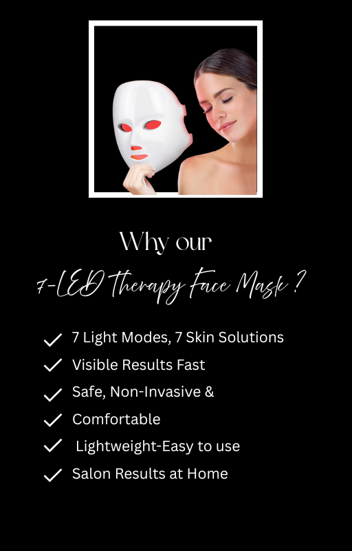 Our 7-LED Therapy Face Mask combines cutting-edge light therapy with comfort and simplicity — bringing spa-grade skincare right to your home.